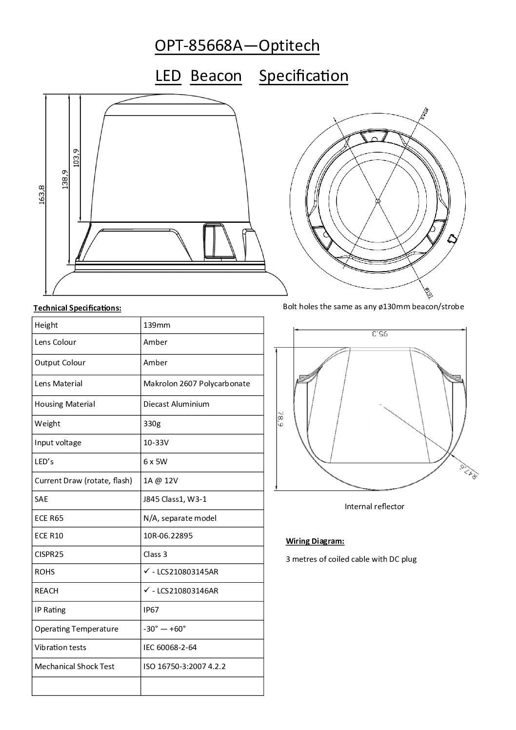 Denna ljuseffekt gör att Vision X Optitech LED Beacons uppfyller Heavy Vehicle Regulation 2013 No.77. Vision X Optitech beacon-sortiment är lika synligt som traditionella halogenbeacons med 55W (eller 70W) glober, till en bråkdel av strömförbrukningen med halogen.